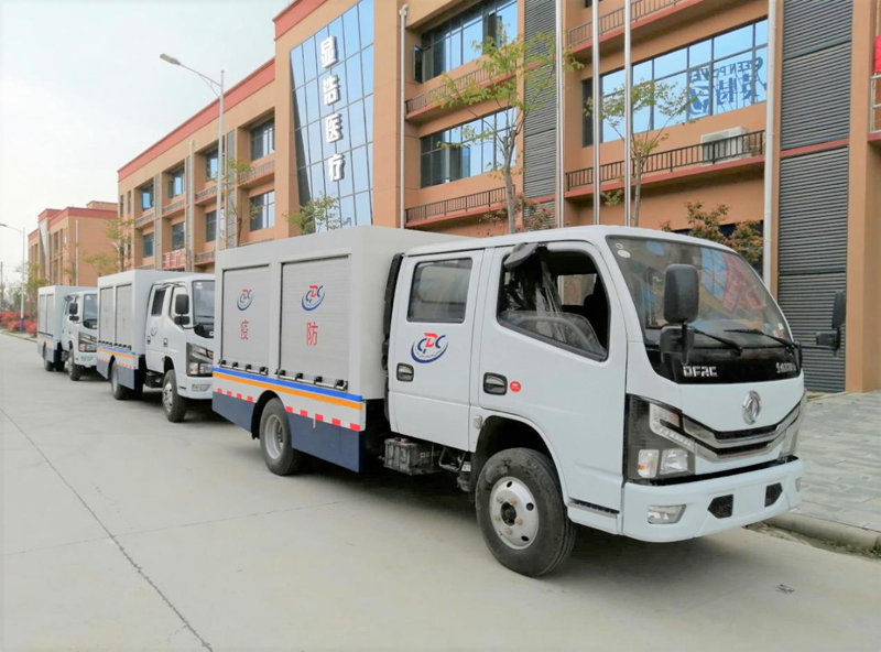 防疫車以汽車底盤為基礎,加裝大容量的罐體,內部加做防腐涂層,可裝運和噴灑各種藥劑,是衛生防疫消殺的理想專用車輛。