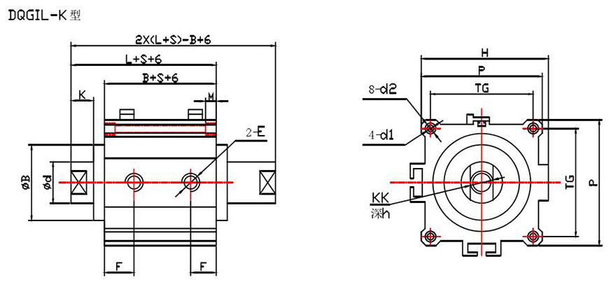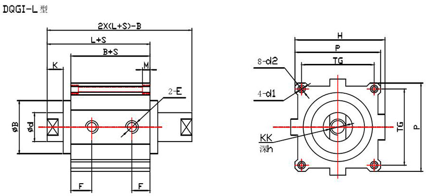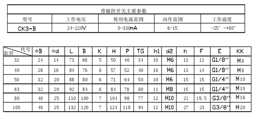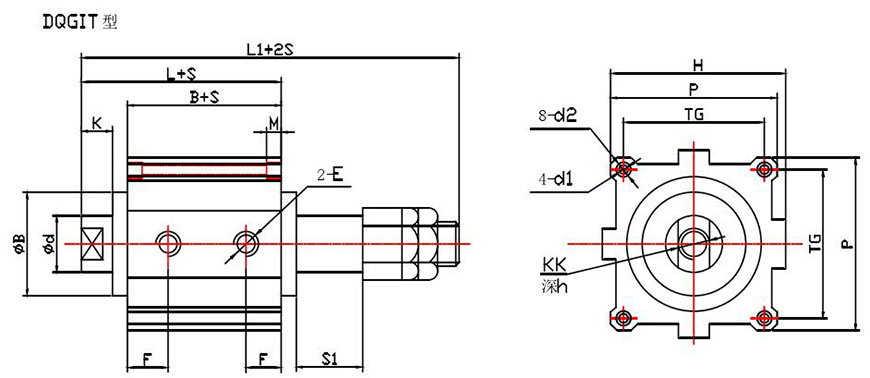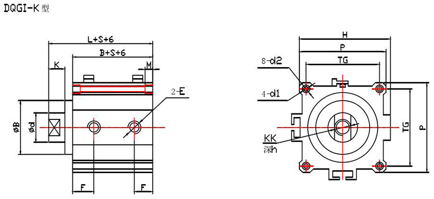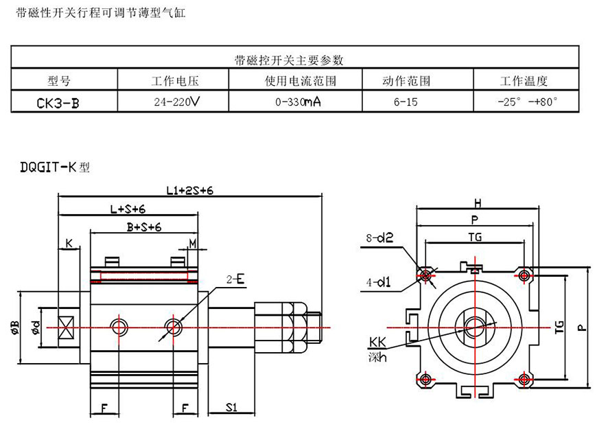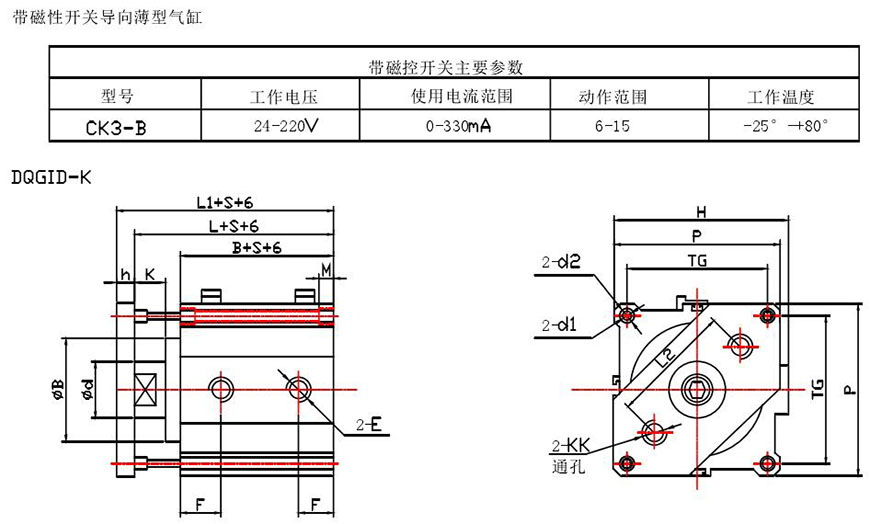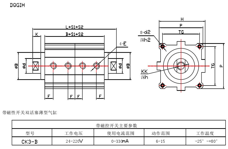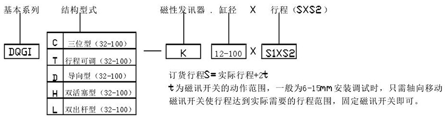 示例:磁性開關(guān)雙活塞型、缸徑50、行程S1=55,S2=60 DQGIH一K50×55×60