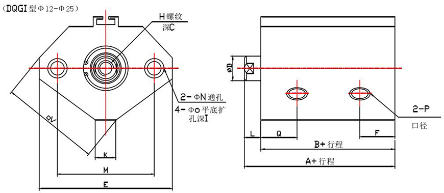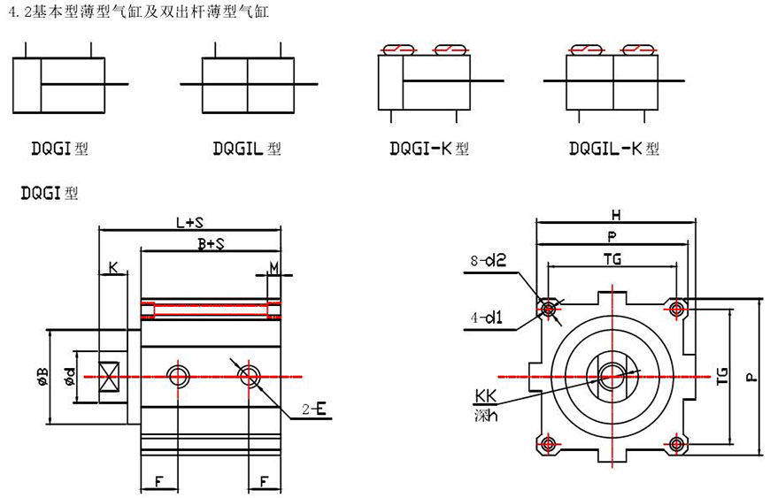 4.6雙活塞薄型氣缸(DQGIH〇32-〇100)